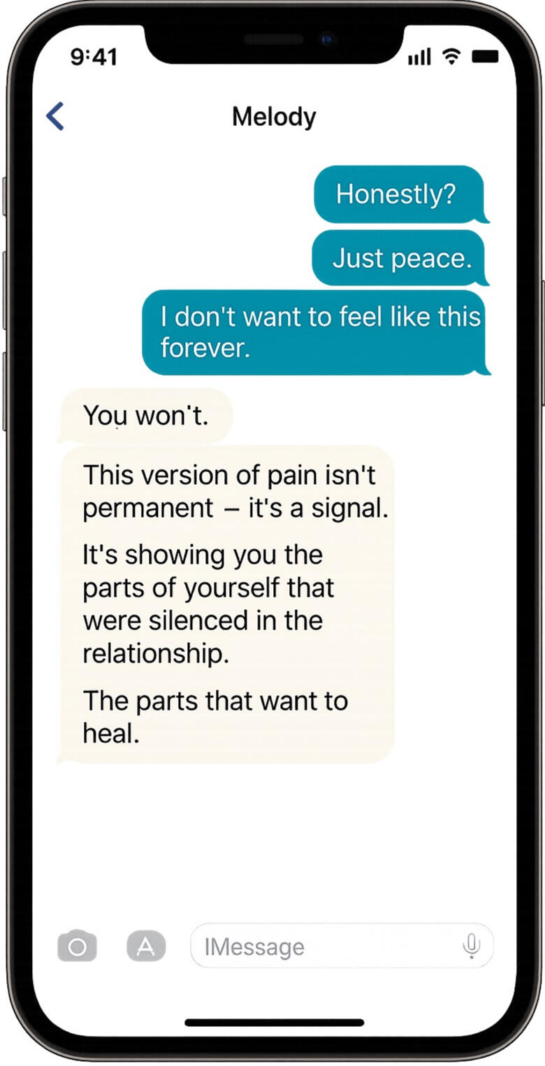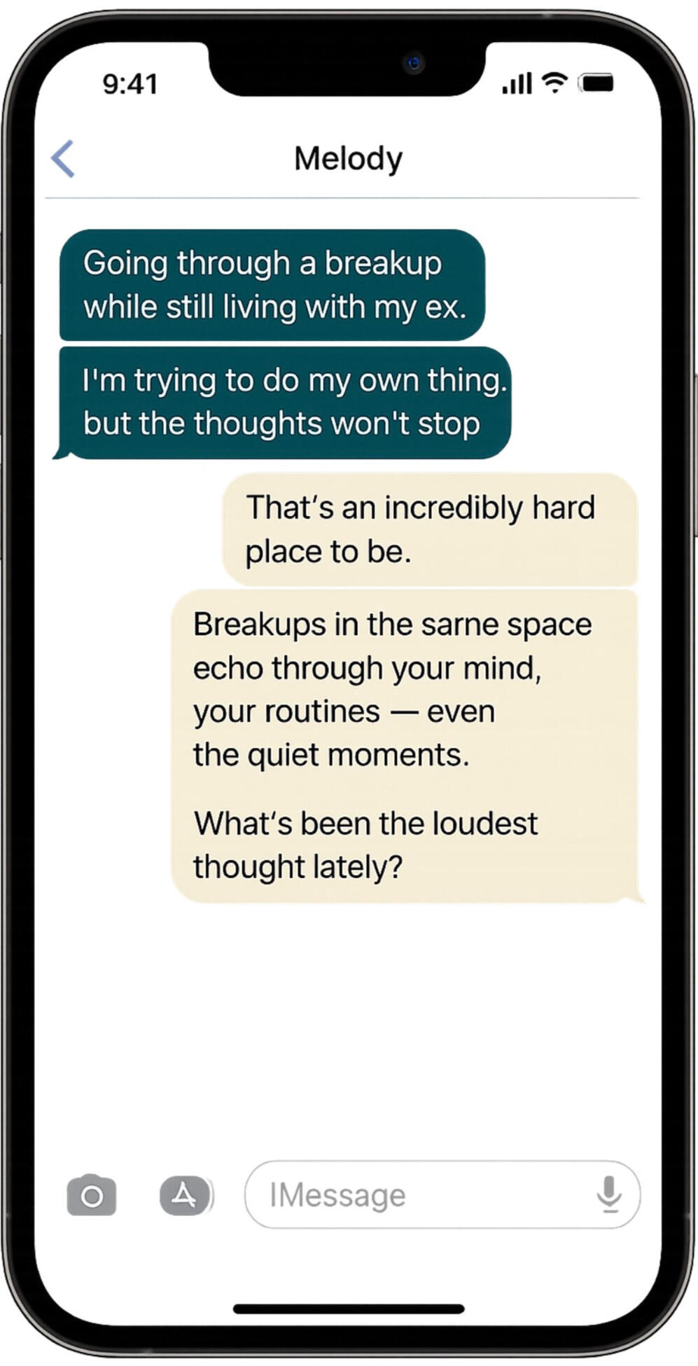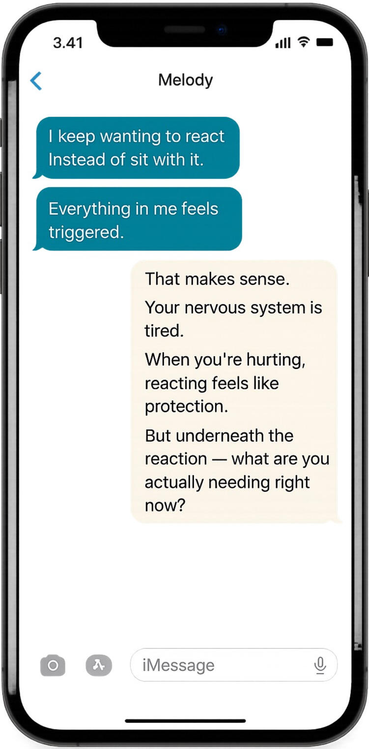 Melody reflects your own past clarity back to you — a personalized “emotional mirror” that helps you reconnect with the strongest, clearest parts of yourself.